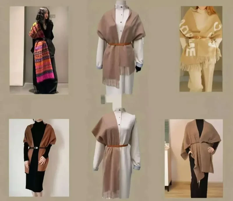 This style shapes the scarf into a V-shaped drape across the chest. It is especially flattering for rounder face shapes, as the extended V line helps create a longer, slimmer facial appearance.