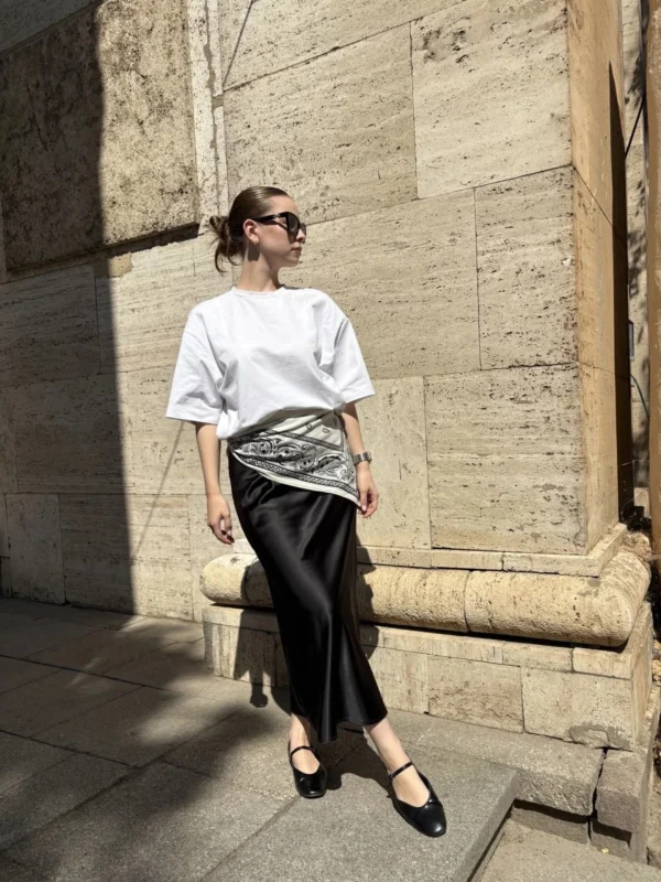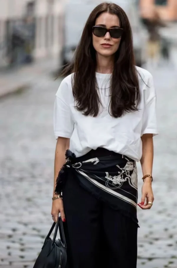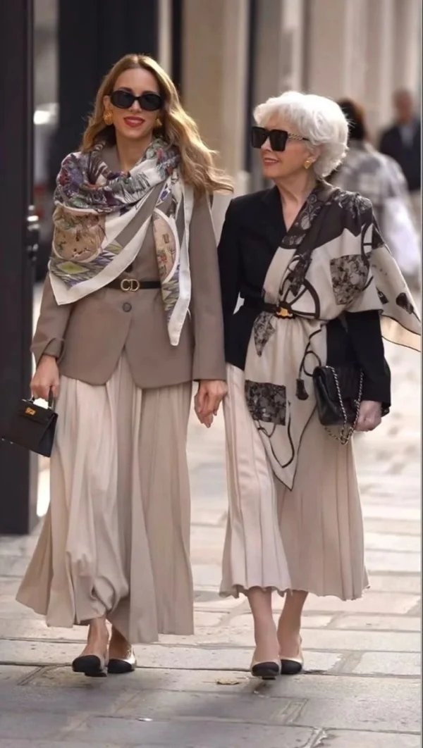 She didn’t change her outfit—she simply grabbed a silk scarf before heading out the door.