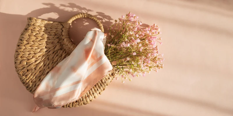 Tie a silk scarf onto a straw bag or canvas tote handle, finishing with a pretty knot.A small detail, but one that adds a fashion-forward, curated feel—don’t be surprised if people ask where you got it.
