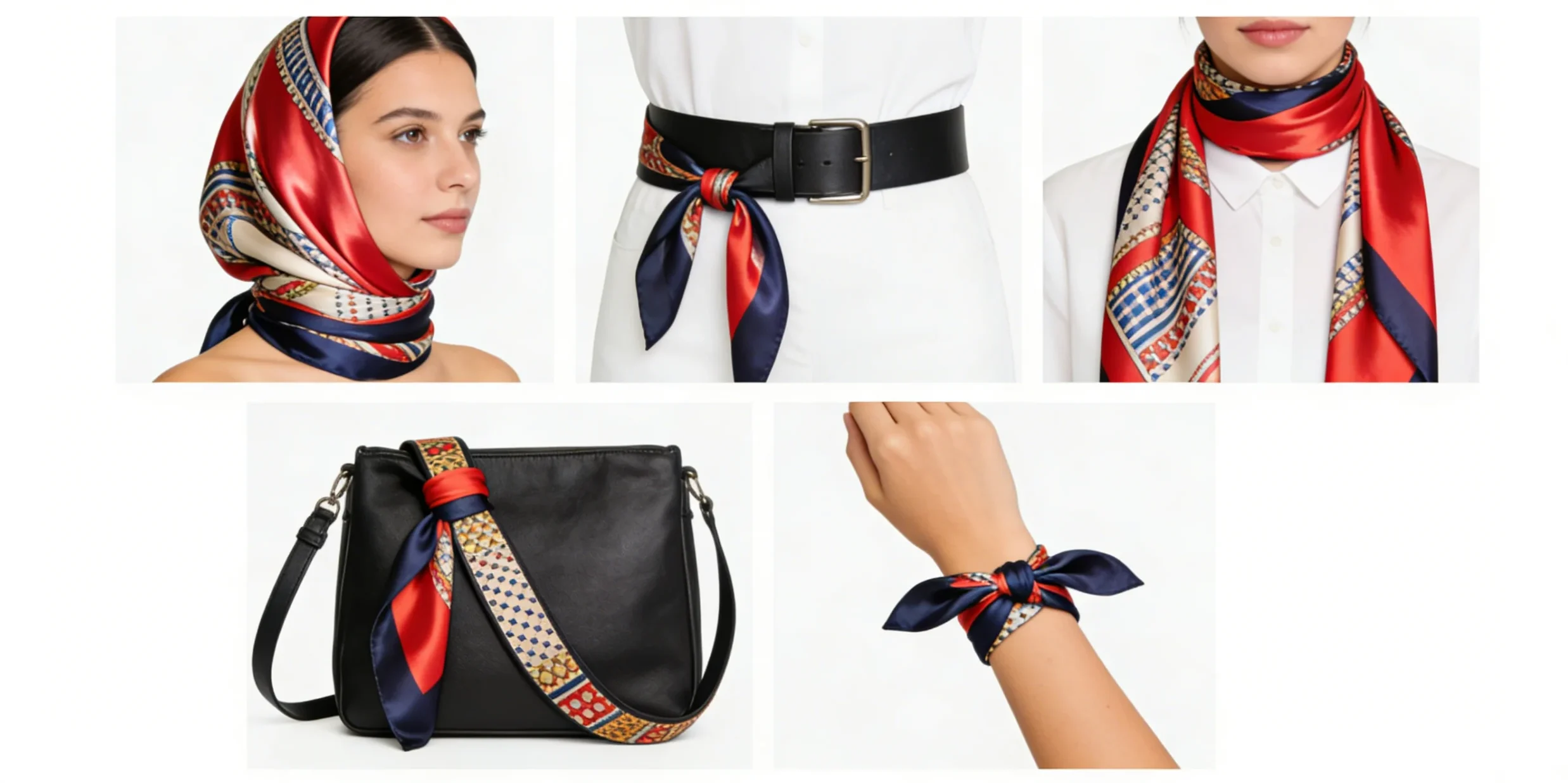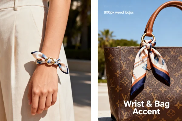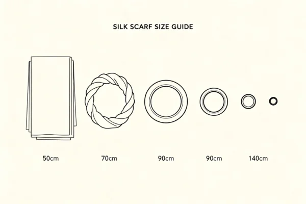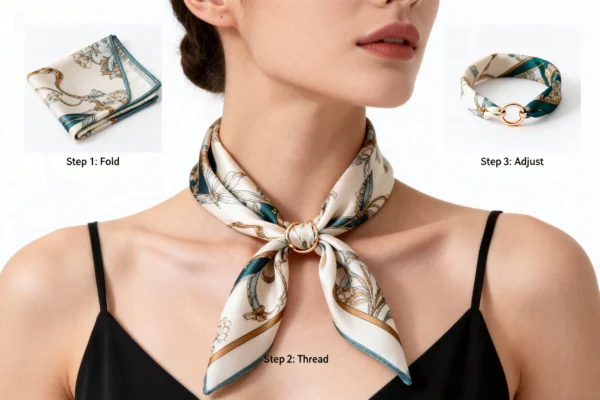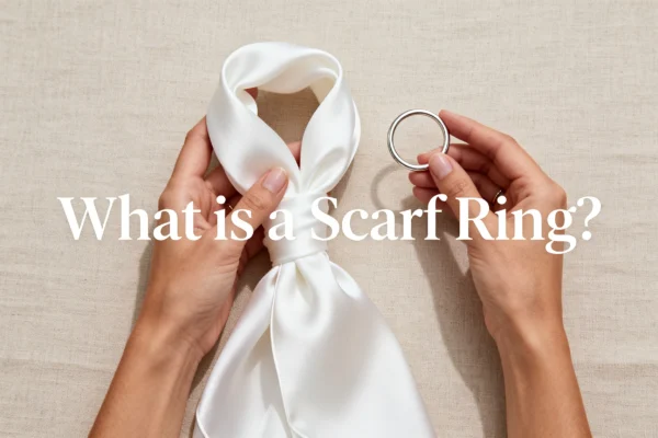 Pro Tip: If you’re wondering what size silk scarf to buy for ring styling, a 90×90 cm silk scarf is the most versatile. It’s large enough for multiple styles but lightweight enough to drape beautifully through a ring .