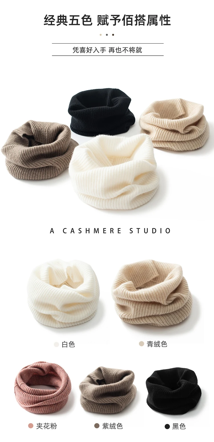 100% Cashmere Knitted Scarf Winter New Outdoor Women’s Solid Color Soft Warm Scarves Neck Warmth Scarf Brand O Ring Scarf
