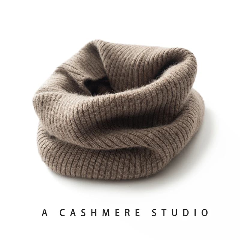 100% Cashmere Knitted Scarf Winter New Outdoor Women’s Solid Color Soft Warm Scarves Neck Warmth Scarf Brand O Ring Scarf