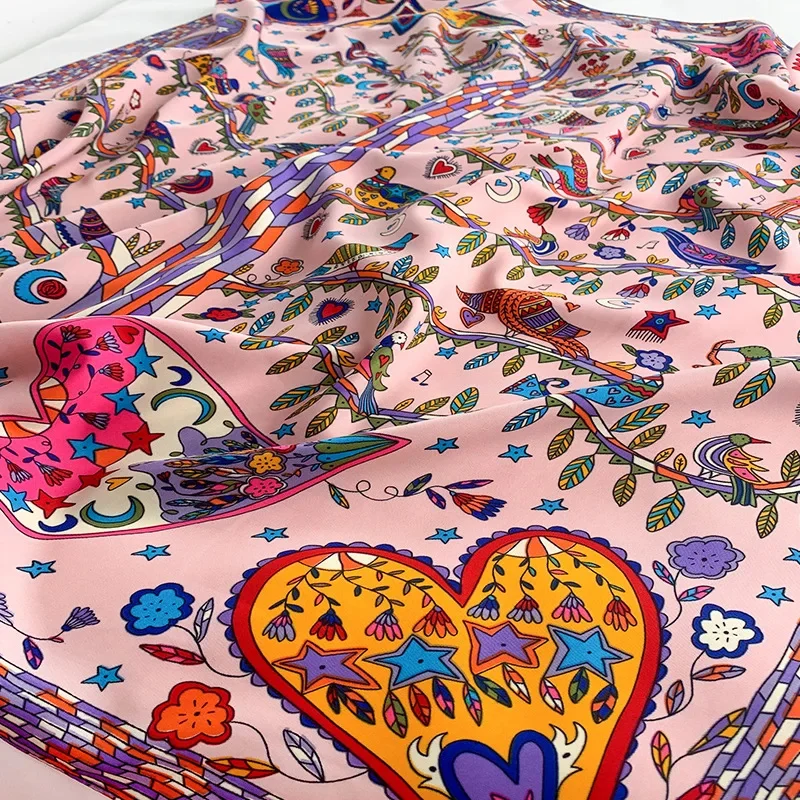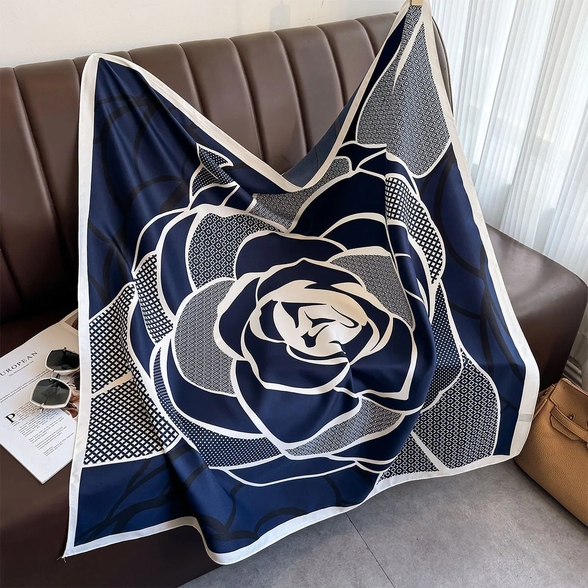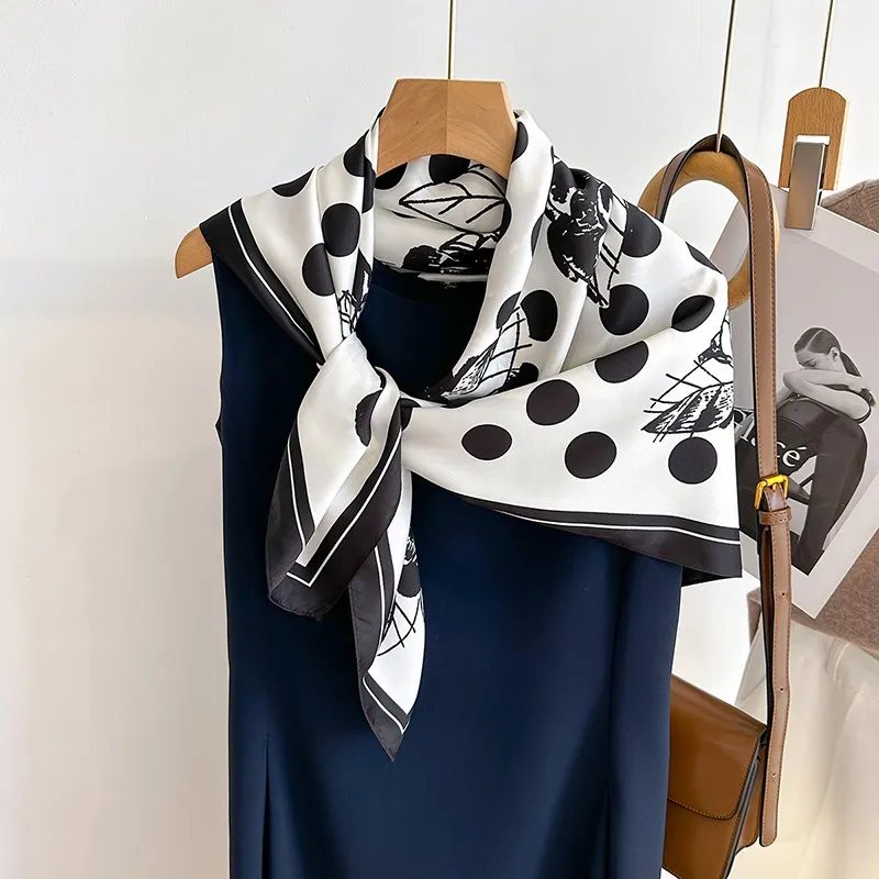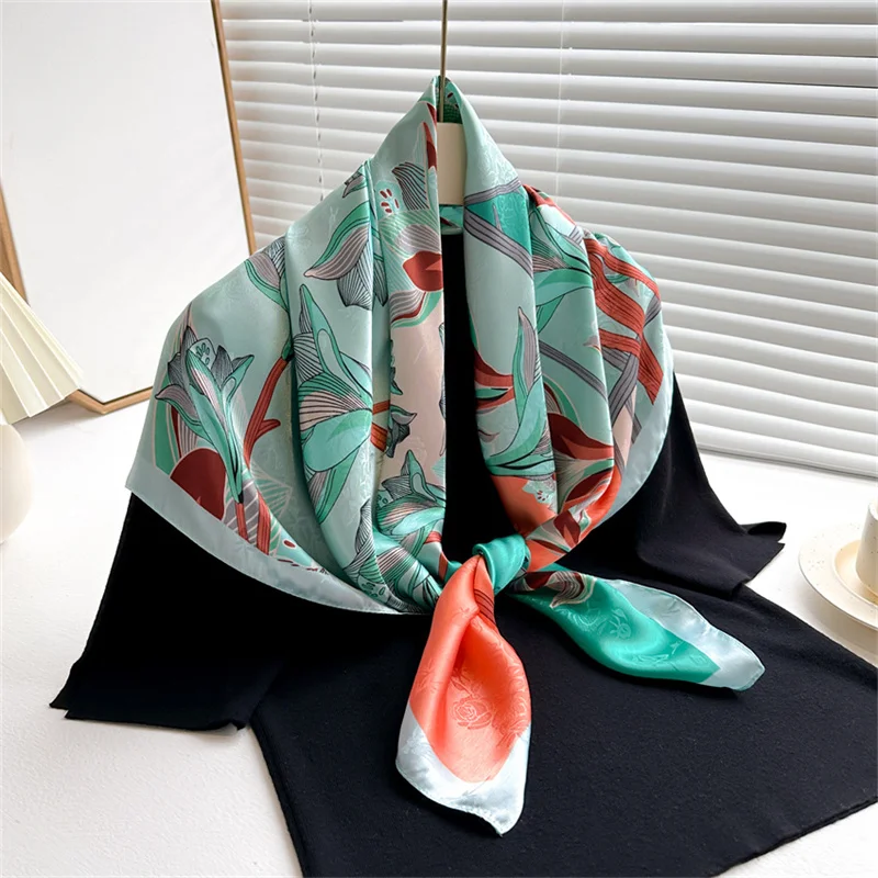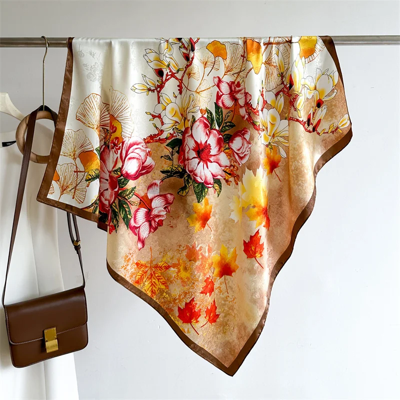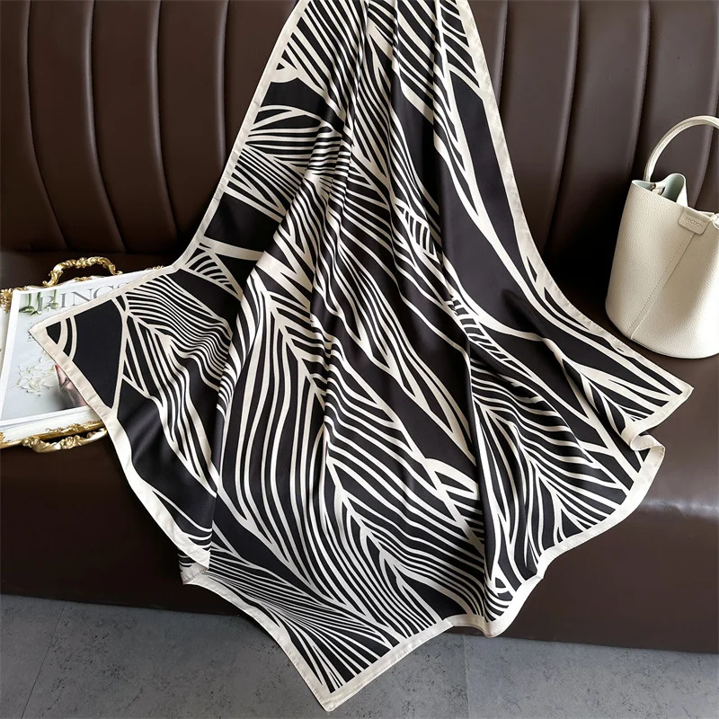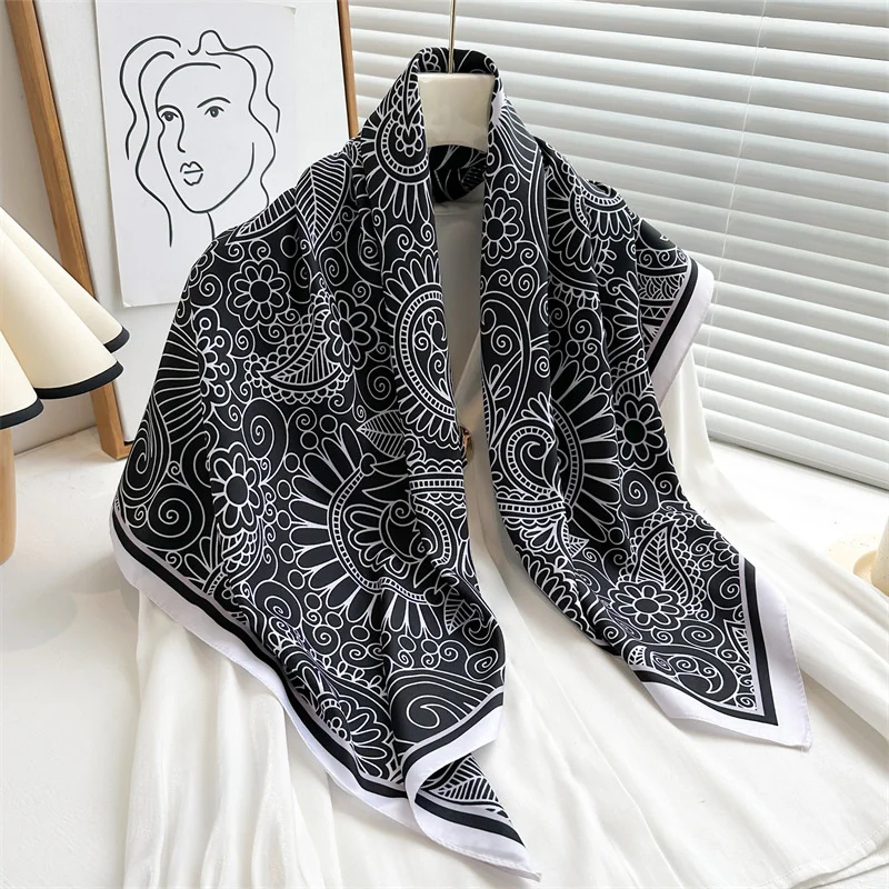 Chain Print Silk Square Scarf 90cm Retro Shawl Women