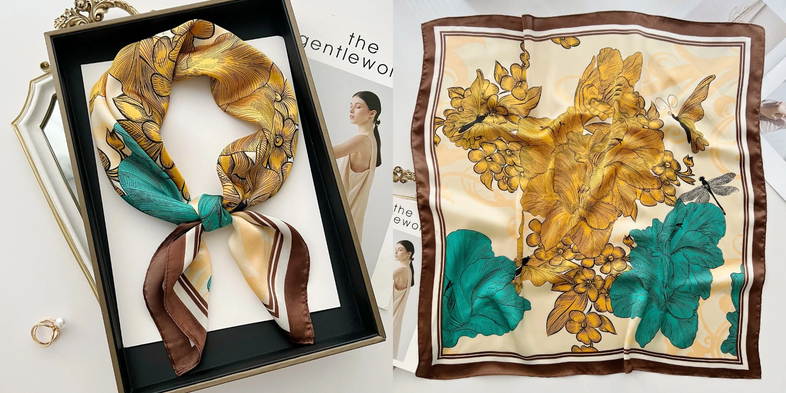 Luxury Floral Silk Square Scarf Women