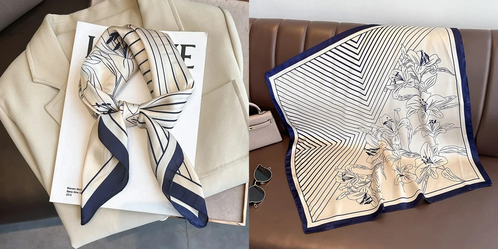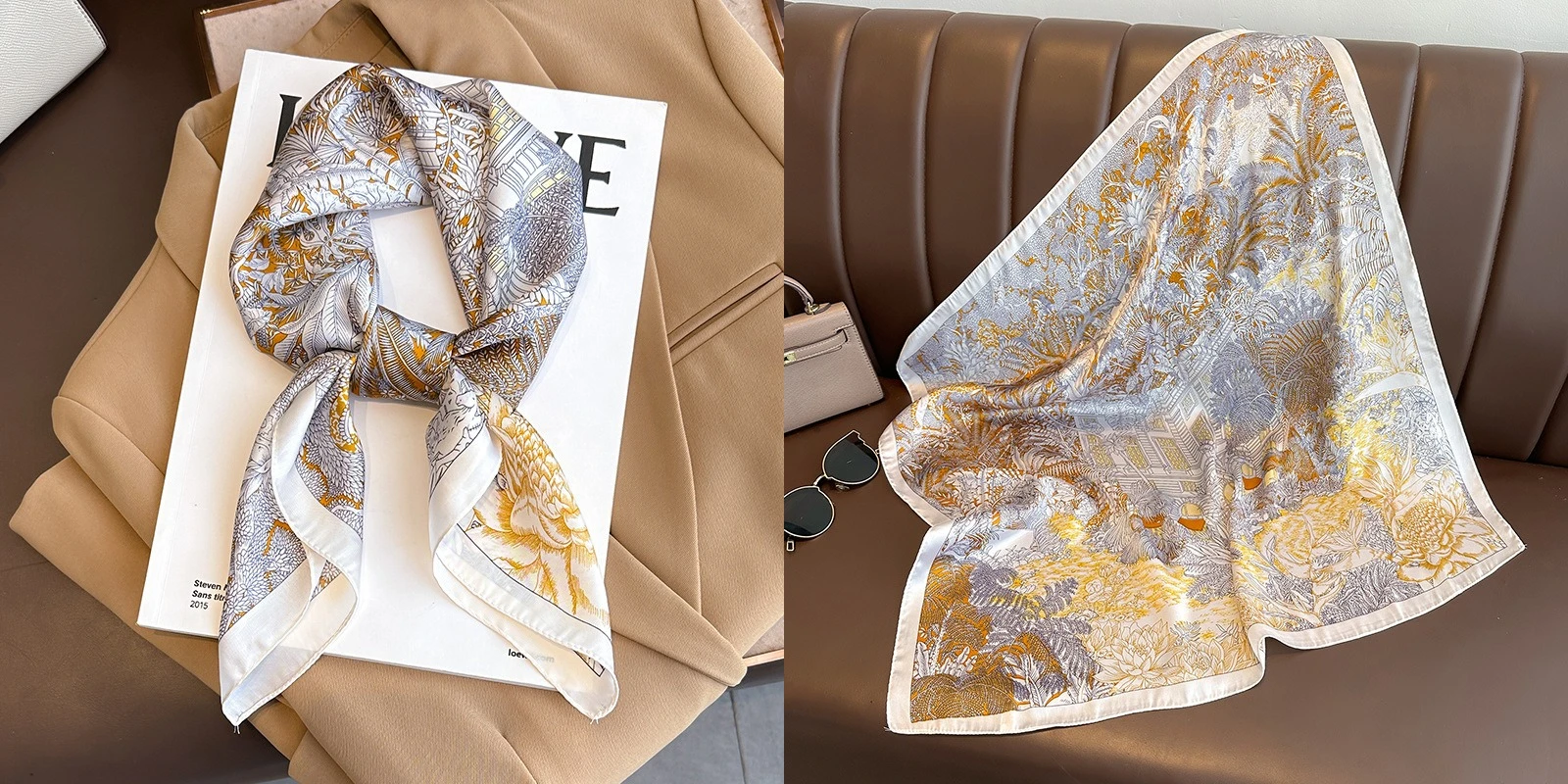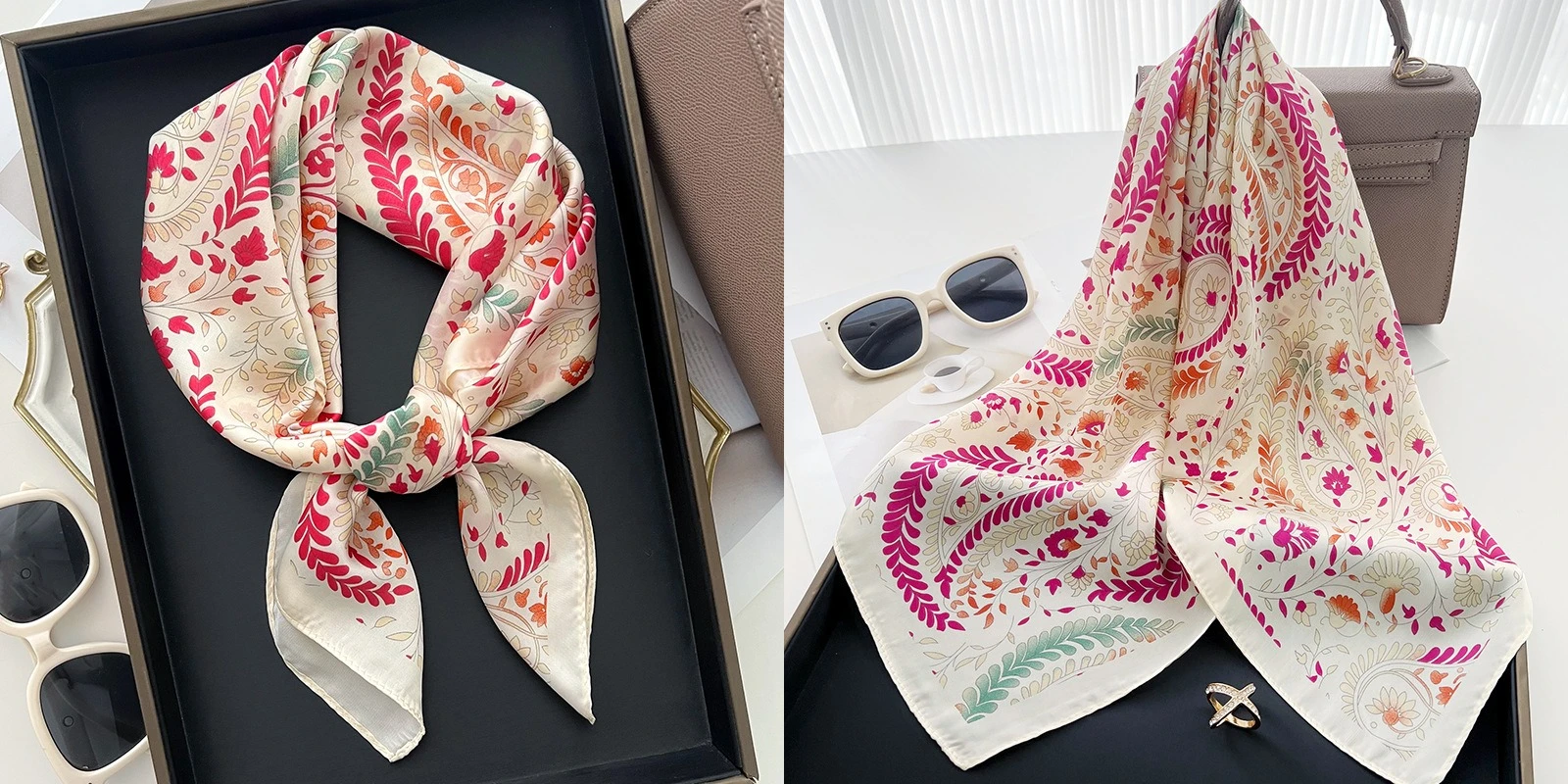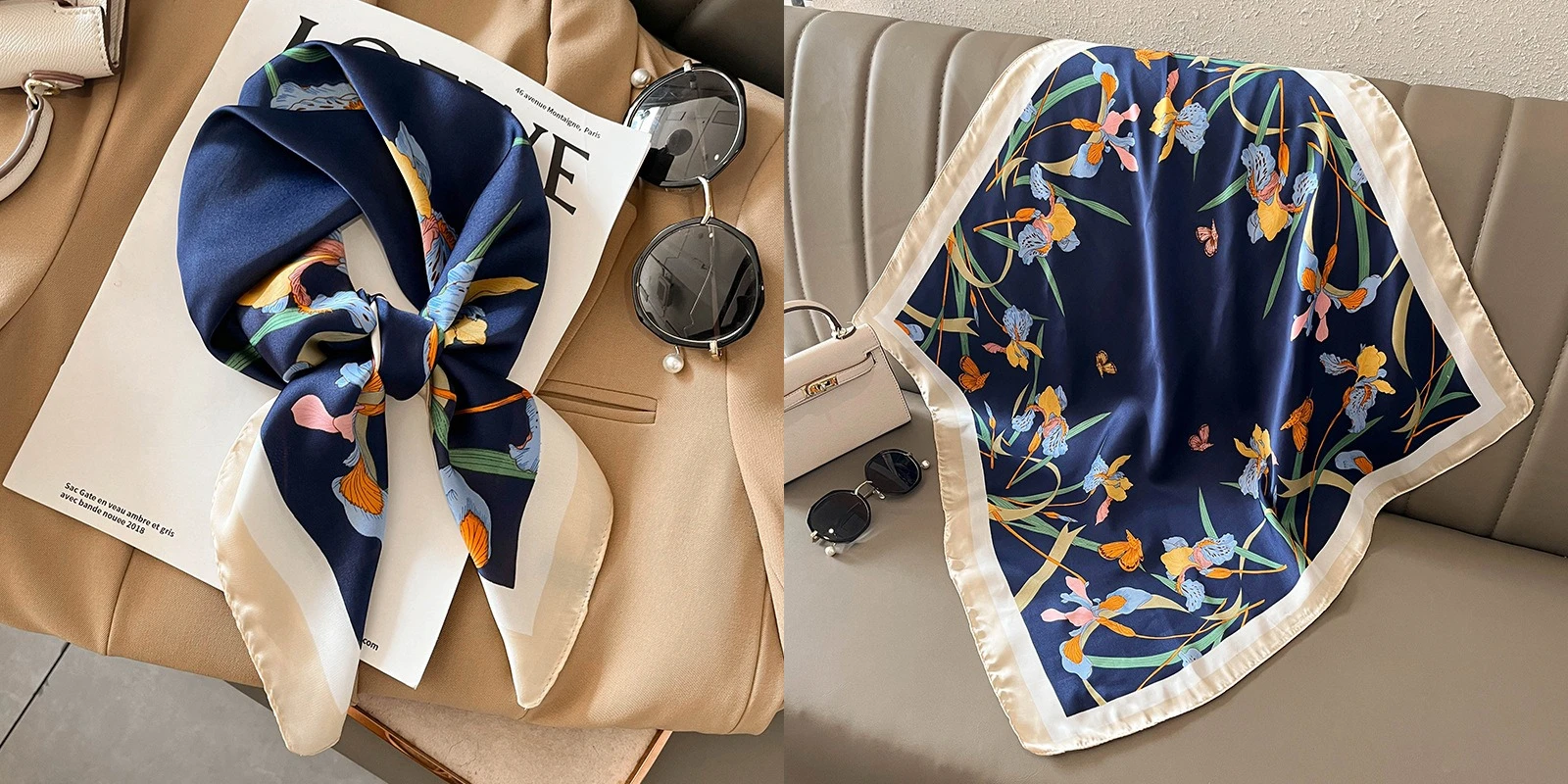 Luxury Floral Silk Square Scarf Women