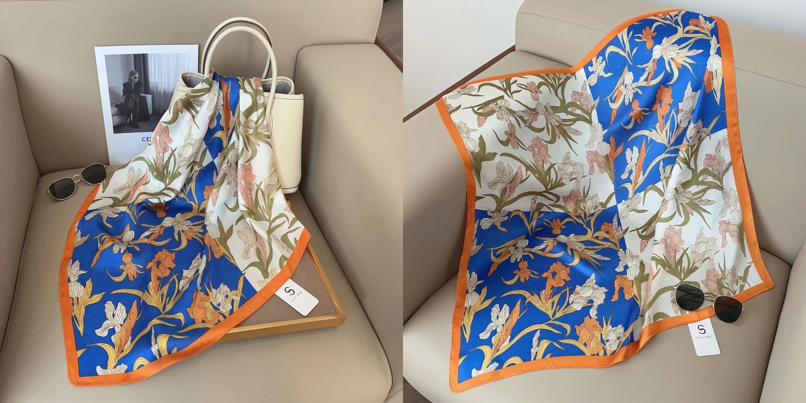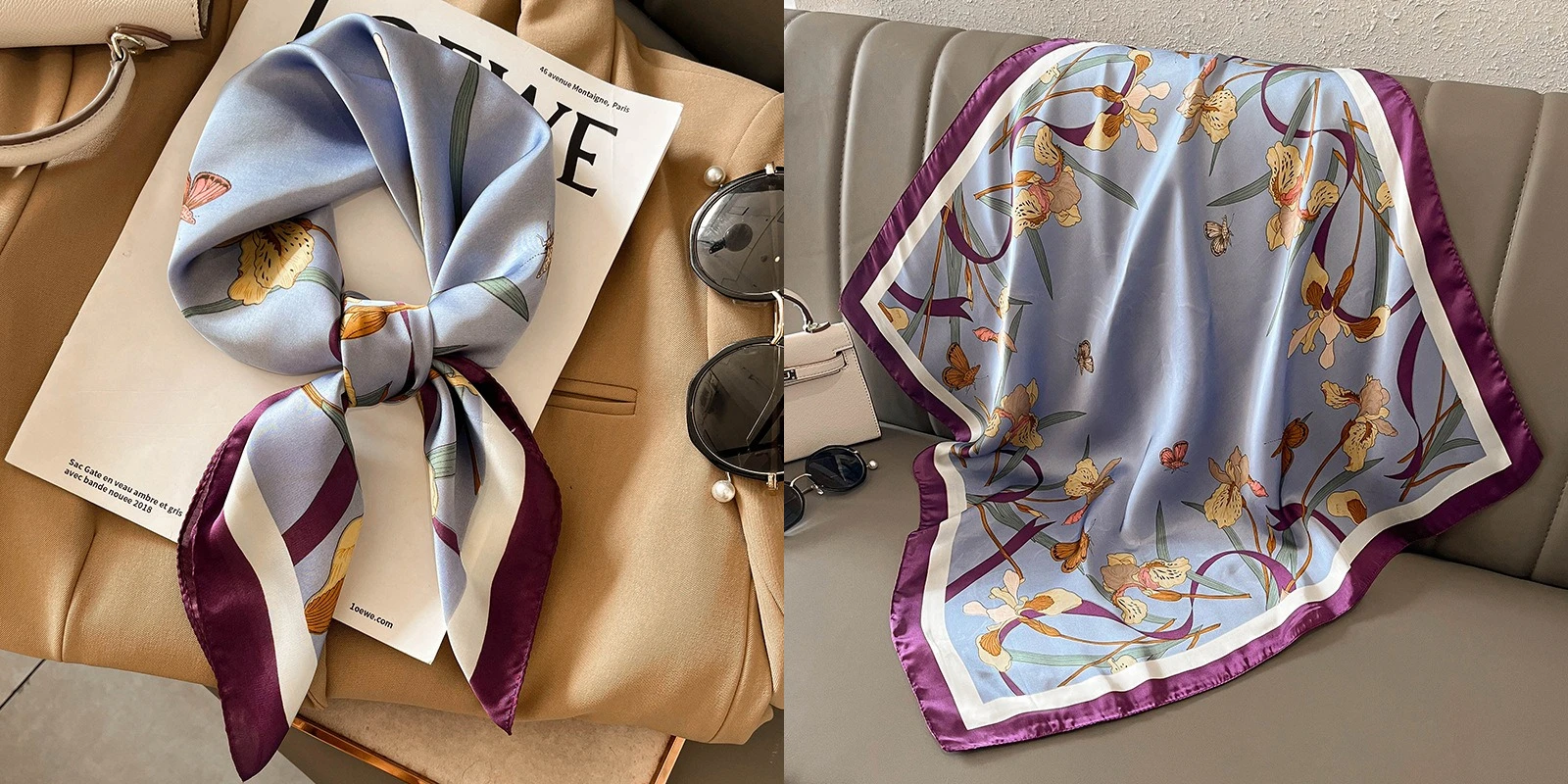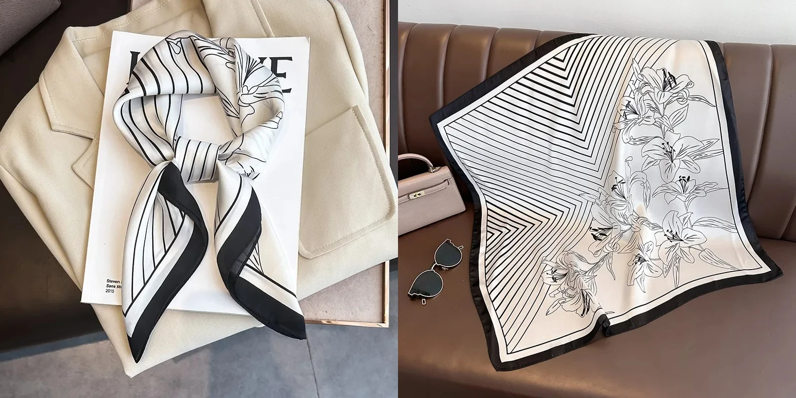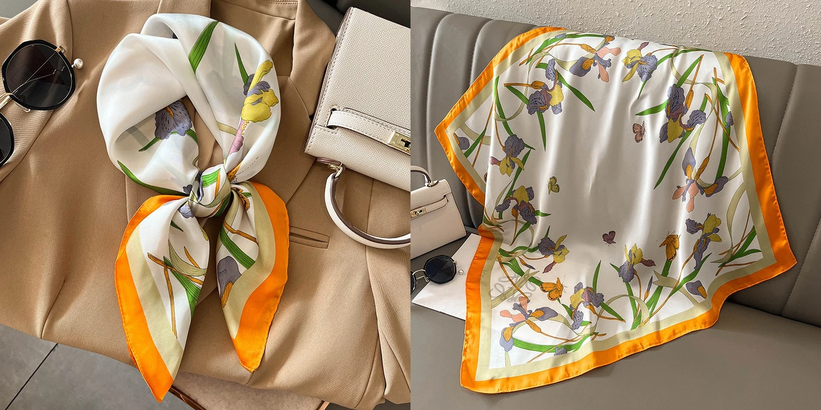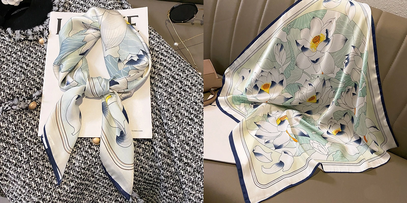 Luxury Floral Silk Square Scarf Women