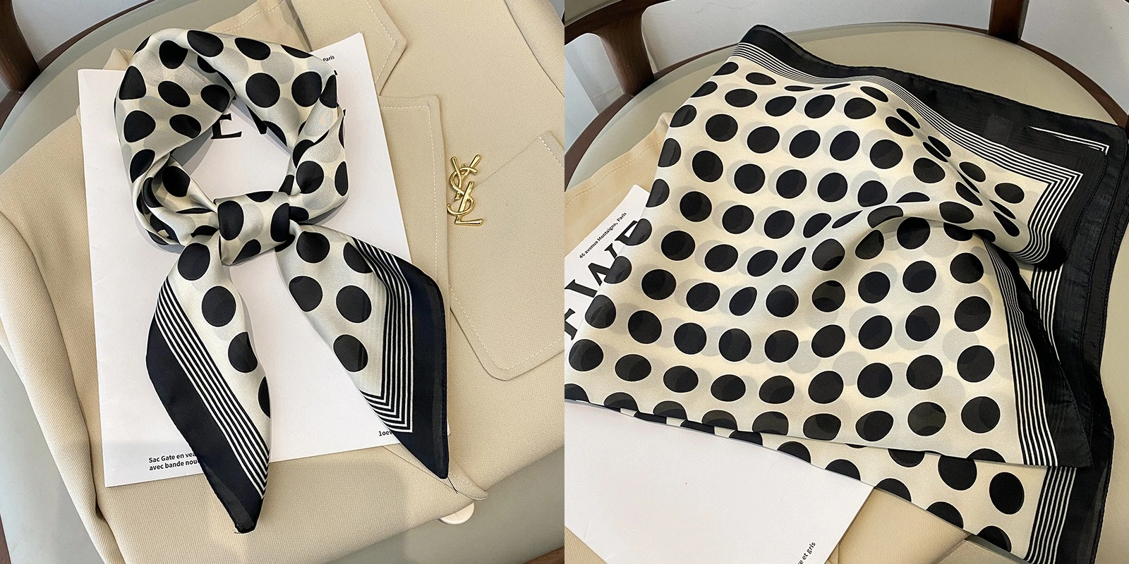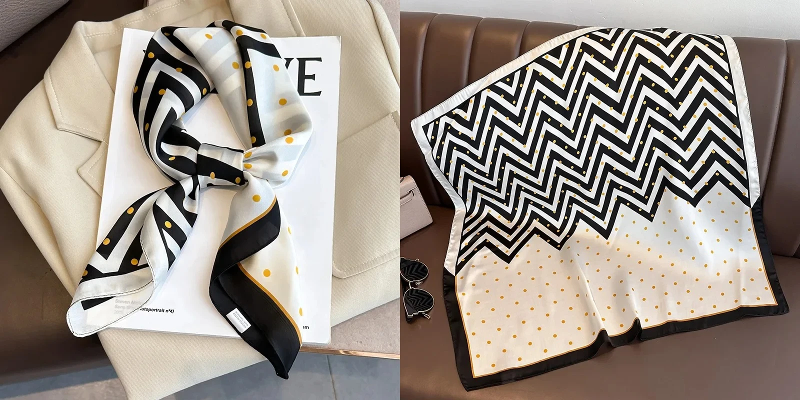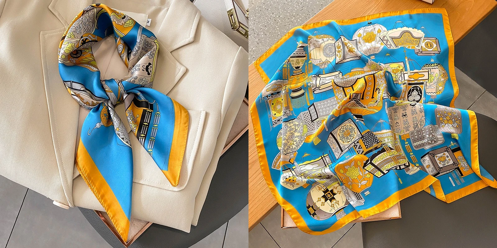 • Chain Print Silk Square Scarf 90cm Retro Shawl Women