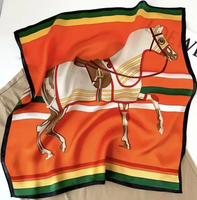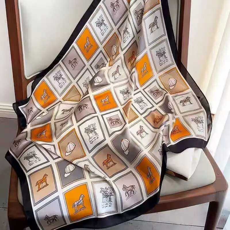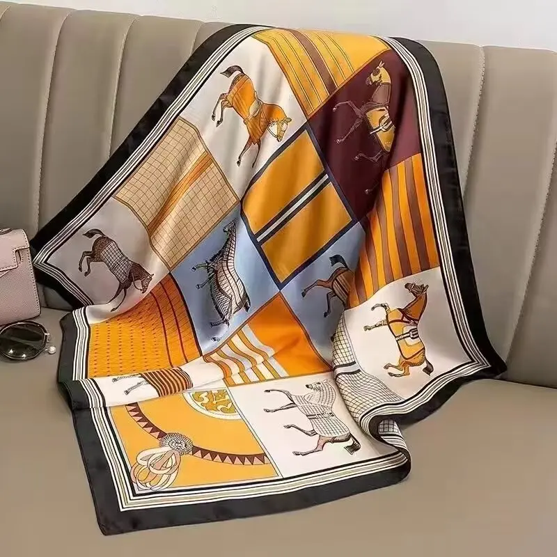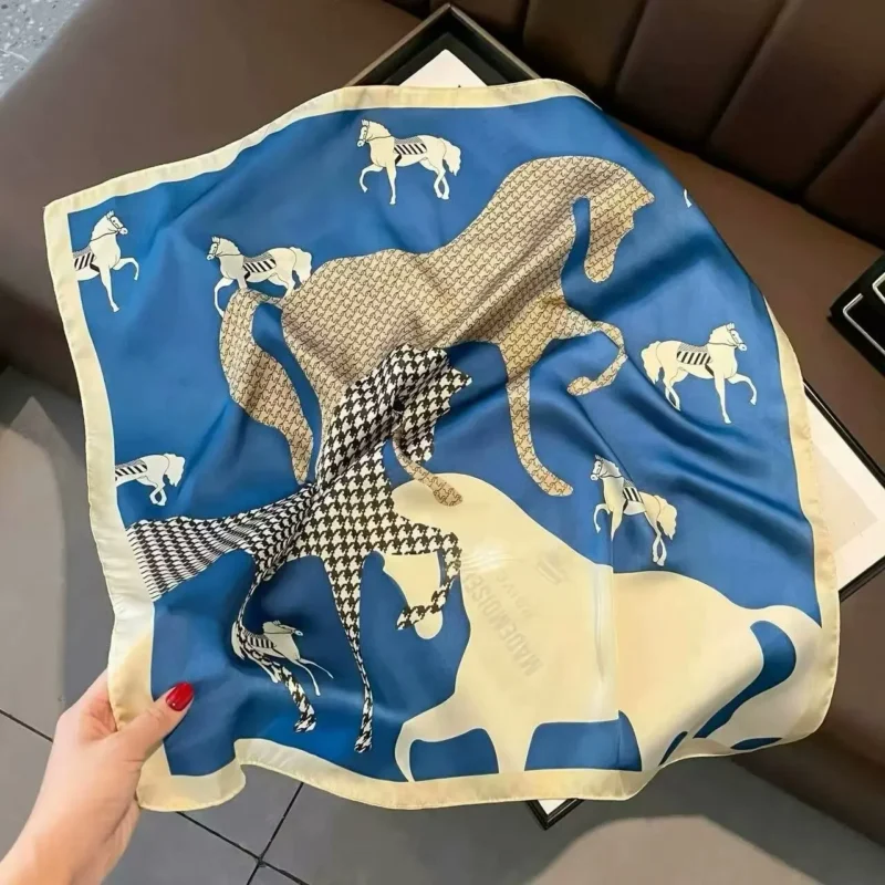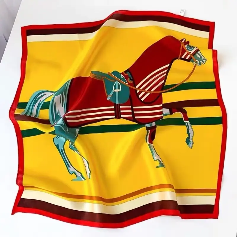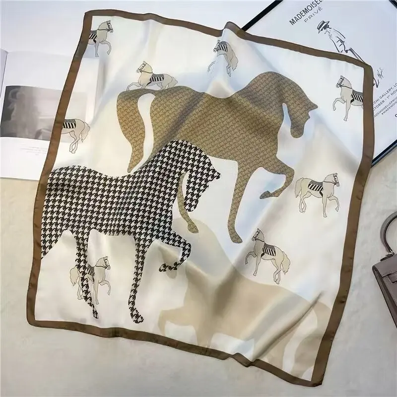 Horse Print Skinny Silk Neckerchief Luxury Design Square Scarf for Women Soft Satin Scarves Bag Ribbon Female Foulard Hairband