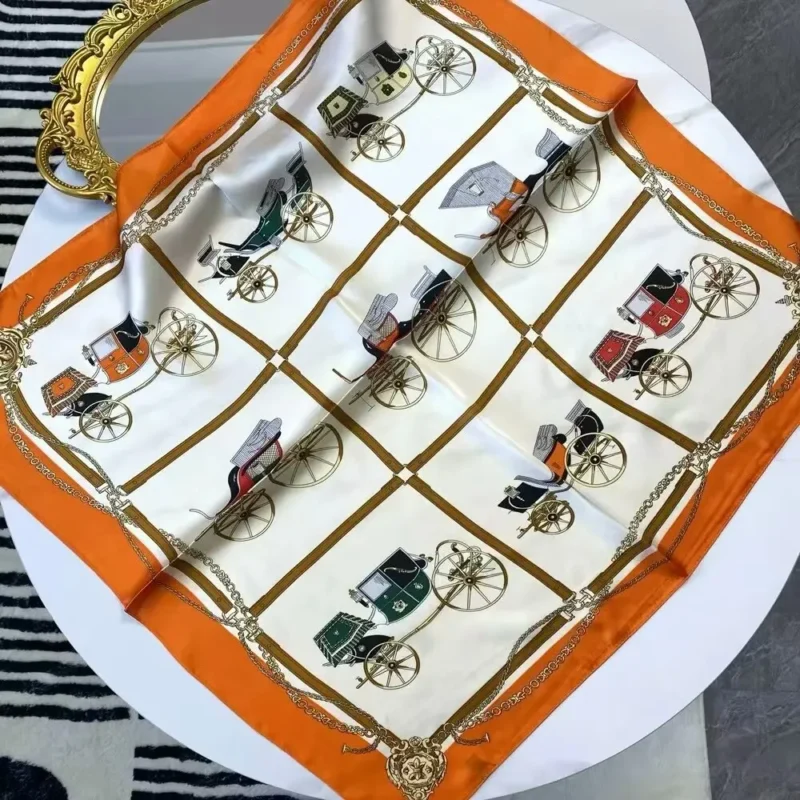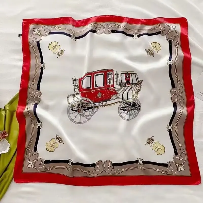 Chain Print Silk Square Scarf 90cm Retro Shawl Women