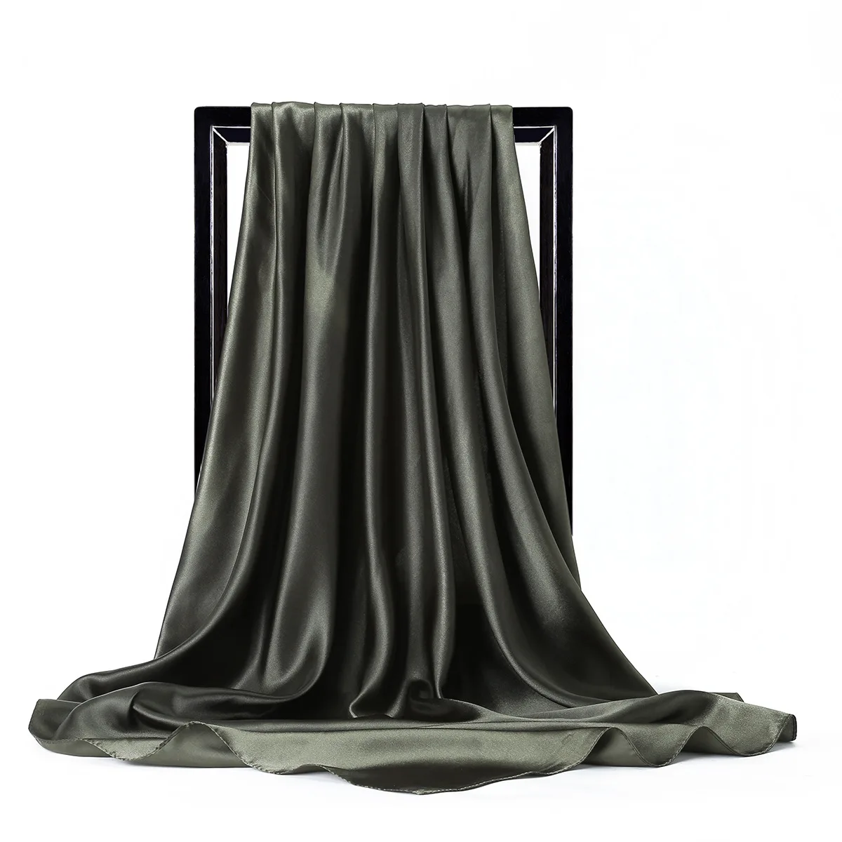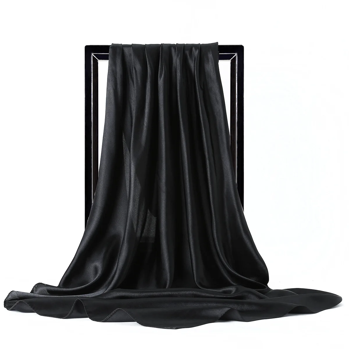 Silk Satin Square Scarf Women Solid Hijab Shawl