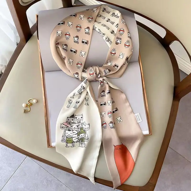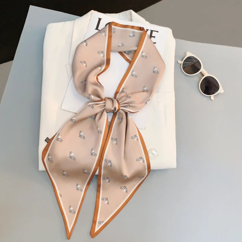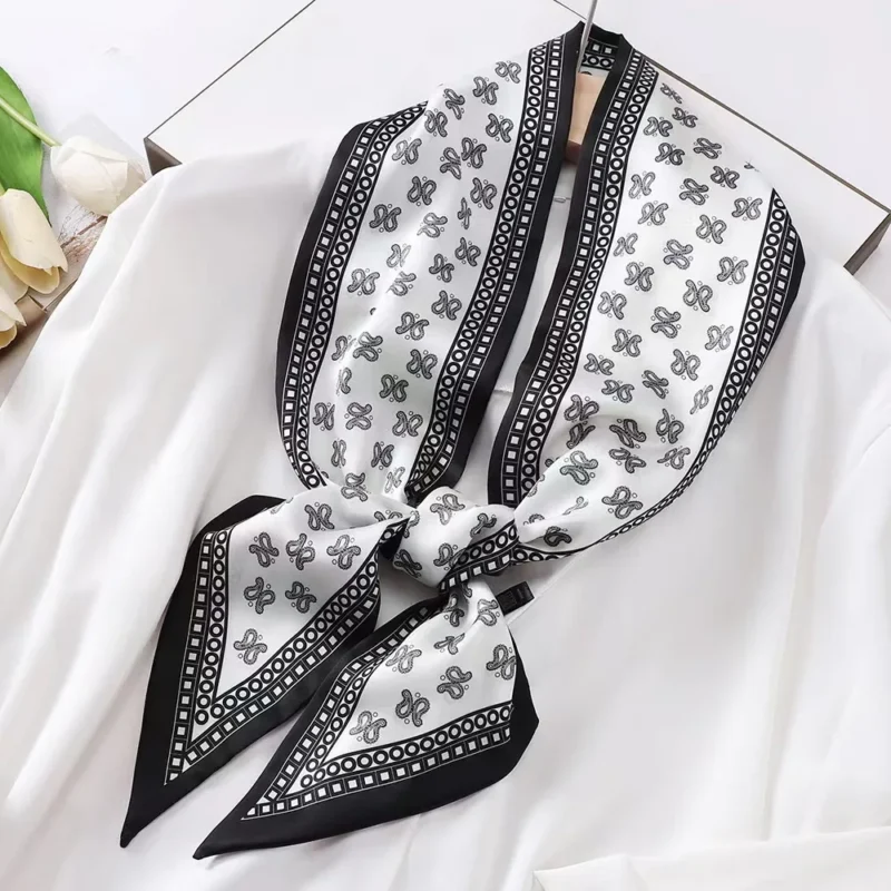 • Horse Print Skinny Silk Neckerchief Luxury Design Square Scarf for Women Soft Satin Scarves Bag Ribbon Female Foulard Hairband